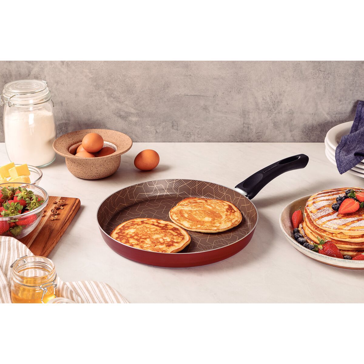 Dados Técnicos: Esta panquequeira possui 28cm de diâmetro, é fabricada em alumínio e conta com cabo de baquelite antitérmico, proporcionando segurança e conforto durante o manuseio.